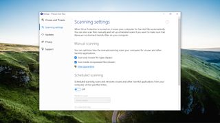 Other scan options, which aren’t obviously present, include a full system scan and scheduled scan. You can find them if you tinker click around the main console for a bit. There aren’t any other scanning options, though, and you can’t create a custom scan. The only options you can change are whether you only want to scan known file types or inside compressed files as well. There’s also the option of scanning a specific file, folder, or drive, from the right-click menu. The parallel scans, however, seem to be impossible.
