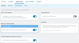 The Settings pages can be accessed from the Protection tab, and from there, you can schedule scans and customize which files, folders, or drives you want to have excluded from those scans. From there you can also turn specific options on and off, such as the exploit defense for browsers, browser plugins, etc., protection against DLL hijacking, prevention of backdoor traffic, and so forth. There are even additional layers to protect your device(s) from sandbox-aware malware.